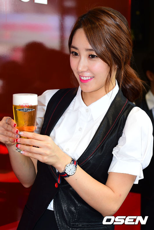 2일 오후 서울 서초구 부티크모나코 빌딩에서 진행된 ‘아사히 수퍼드라이 엑스트라 콜드 바’ 4만잔 돌파 기념 아나운서 최희가 포즈를 취하고 있다.
