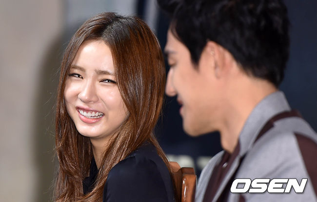 배우 신세경이 기자간담회 중 미소를 짓고 있다.