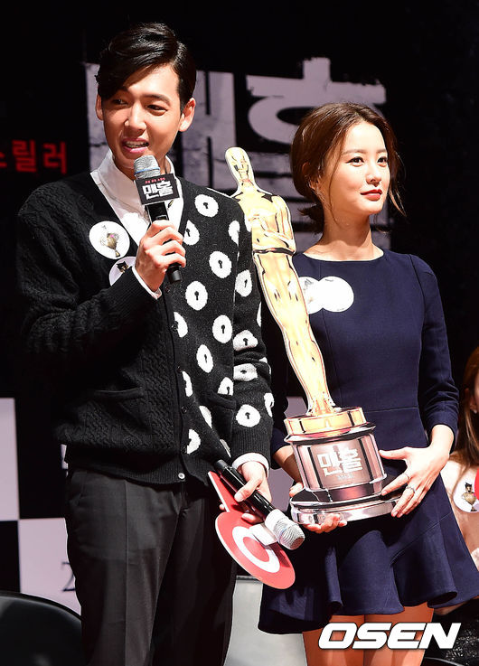배우 정경호와 정유미가 3일 오전 서울 자양동 롯데시네마 건대입구에서 열린 영화 '맨홀'(감독 신재영) 제작보고회에 참석해 사회자의 질문에 답하고 있다.