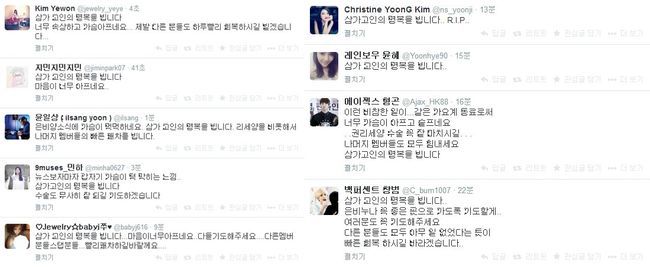 또한 에이젝스 형곤은 “이런 비참한 일이...같은 가요계 동료로써 너무 가슴이 아프고 슬프네요. 권리세양 수술 꼭 잘 마치시길...나머지 멤버들도 모두 힘내세요. 삼가고인의 명복을 빕니다”라고 중태라고 밝혀진 권리세의 쾌유를 바랐다.