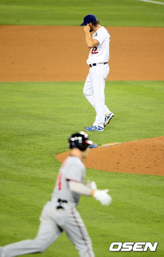 7회초 2사에서 다저스 커쇼가 워싱턴 하퍼에 솔로포를 허용하며 아쉬워하고 있다./ jpnews@osen.co.kr