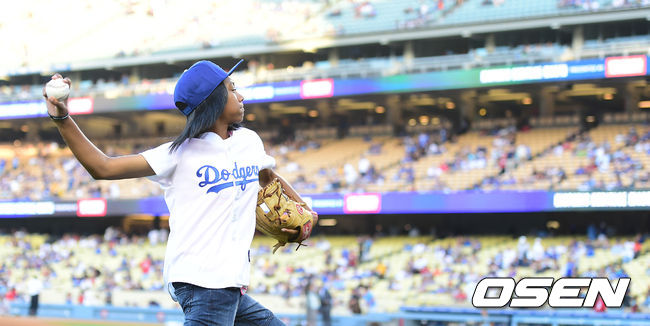 경기에 앞서 리틀리그 월드시리즈 예선경기에서 여자 선수 최초로 승리투수가 된 모네 데이비스가 시구에 앞서 몸을 풀고 있다./ jpnews@osen.co.kr