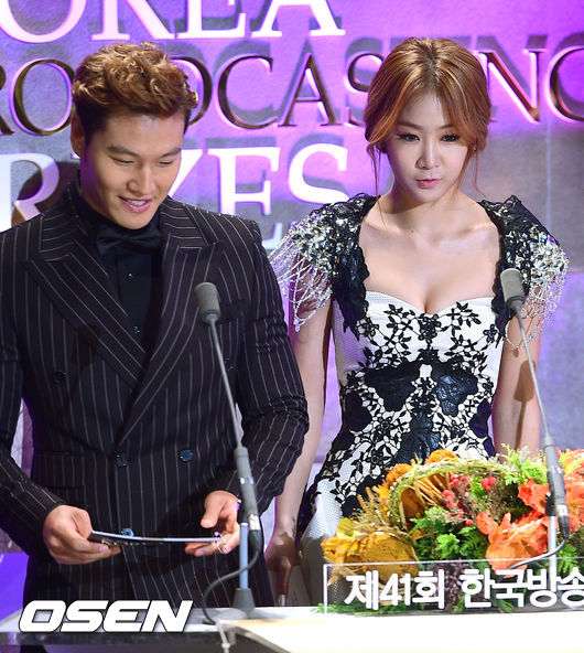 3일 오후 서울 KBS홀에서 진행된 제41회 한국방송대상 시상식에서 씨스타 소유와 김종국, 현우가 시상에 나서고 있다.