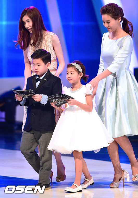 3일 오후 서울 KBS홀에서 진행된 제41회 한국방송대상 시상식에서 윤후와 지아가 시상을 위해 나서고 있다.