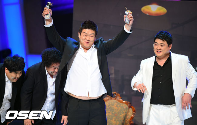 3일 오후 서울 KBS홀에서 진행된 제41회 한국방송대상 시상식에서 개그맨 유민상과 김준현, 송영길, 김태원 팀이 축하무대를 펼치고 있다.