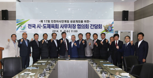 2014인천아시아경기대회 조직위원회(위원장 김영수)는 3일 송도 미추홀타워 조직위 회의실에서 전국 시·도 사무처장 협의회와 인천아시안게임 성공을 위한 간담회를 열었다.