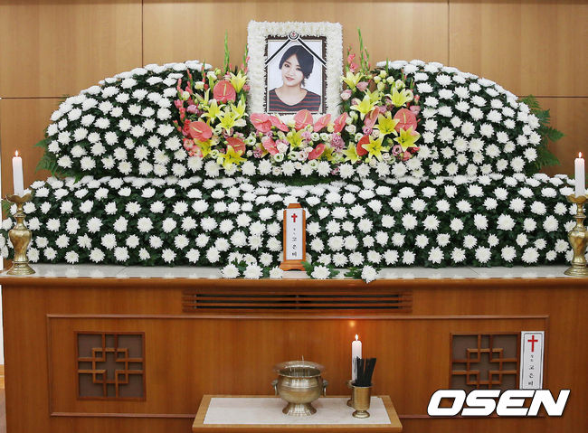 [OSEN=사진공동취재단] 3일 교통사고로 사망한 걸그룹 레이디스코드 멤버 故 고은비의 빈소가 서울 고려대학교 안암병원 장례식장 303호실에 차려져 안타까움을 자아냈다.