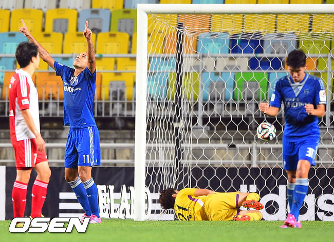3일 오후 수원월드컵경기장에서 열린 현대오일뱅크 K리그 클래식 2014 수원 삼성과 부산 아이파크의 경기,전반 수원 로저가 페널티킥으로 선취골을 넣고 환호하고 있다.