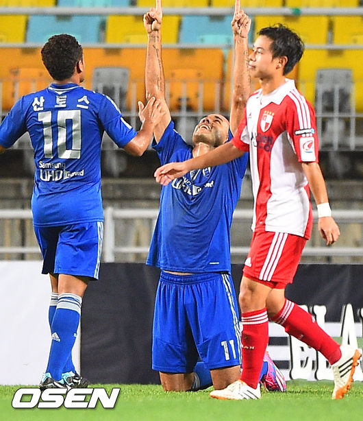 3일 오후 수원월드컵경기장에서 열린 현대오일뱅크 K리그 클래식 2014 수원 삼성과 부산 아이파크의 경기,전반 수원 로저가 페널티킥으로 선취골을 넣고 환호하고 있다.