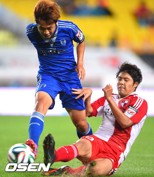 후반 종료직전 부산 황재훈이 수원 서정진의 볼을 태클을 걷어내고 있다. / soul1014@osen.co.kr