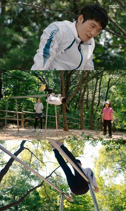 이어 건은 평행봉은 물론 철봉 등을 이용해 묘기에 가까운 체력을 과시하며 미영 모를 놀라게 만들었다.