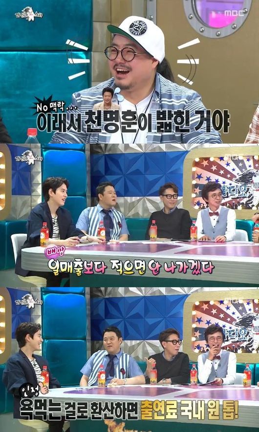 이에 규현은 "나는 거의 게스트급으로 받는다. 우리 출연료를 좀 올려줬으면 좋겠다"고 말했고, 김구라는 "나도 욕 먹는 것에 비해 많이 못 받는다"고 해 웃음을 자아냈다.