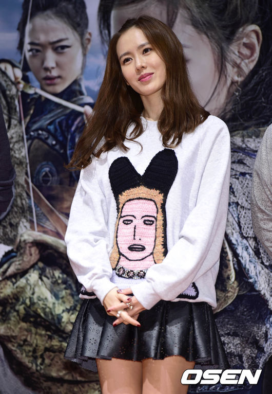 ‘해적’ 700만 돌파 자축 공약 이벤트가 열린 서울 건대 롯데시네마 5관. 손예진이 이석훈 감독과 김남길 이경영 김원해 등과 무대에 오른 건 오후 7시 20분이었습니다. 가죽 미니스커트 차림으로 모습을 드러낸 손예진은 “언니 예뻐요”란 관객들의 연호에 환하게 웃으며 양손 브이로 화답했고, 예상을 깨고 두 번이나 무대에서 무릎을 꿇었습니다.