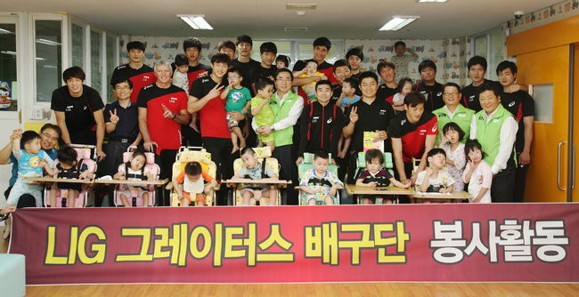 이날 봉사활동에서는 LIG배구단 구단주 대행인 김병헌 대표이사 사장 및 회사 관계자들도 다수 참여해 아이들과 함께하는 시간을 가졌다.