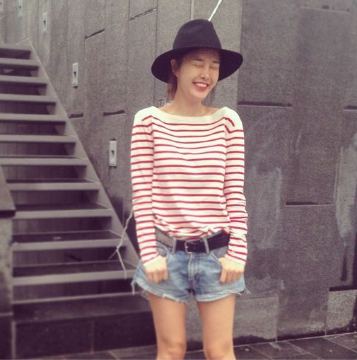 공개된 사진 속에는 눈을 감은 채 깜찍하게 웃고 있는 박은지의 모습이 담겨있다. 박은지는 페도라를 쓰고 긴 스트라이프 티셔츠에 짧은 청바지를 매치한 패션으로 눈길을 끈다.