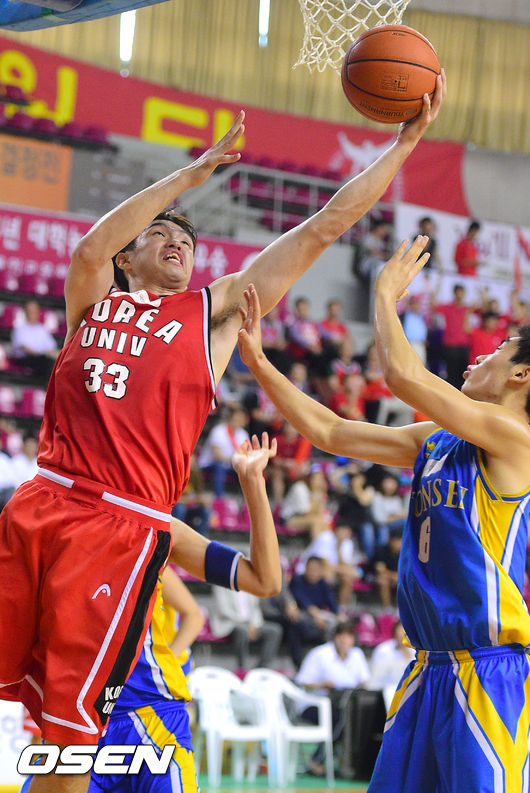 4일 오후 경기도 용인실내체육관에서 열린 2014 KB국민은행 대학농구리그 챔피언결정전 1차전 경기, 2쿼터 고려대 이승현이 레이업슛을 성공시키고 있다.