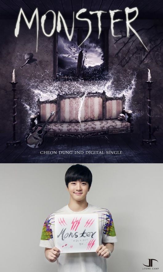 소속사 제이튠캠프는 4일 공식 트위터를 통해 "천둥의 두 번째 디지털 싱글 'Monster' 음원이 9월 05일(금) 낮 12시에 각 음원 사이트를 통해 공개 됩니다"라는 글과 함께 사진을 게재했다.