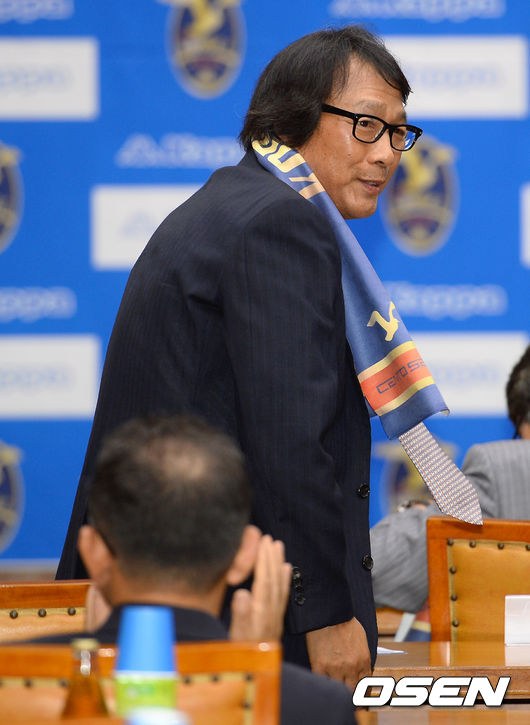 조광래 전 국가대표팀 감독이 내빈들에게 인사를 하고 있다.