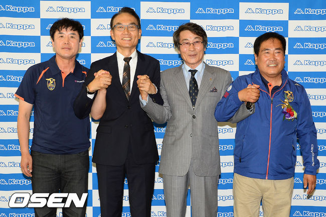 이태호 감독, 민복기 카파코리아대표이사, 박일진 구단주, 송재화 단장이 기념촬영을 하고 있다.
