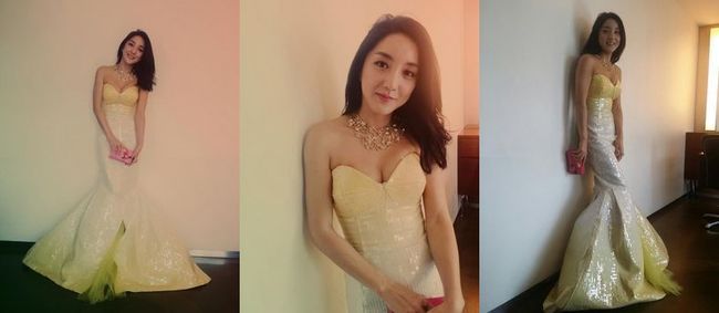 바다는 4일 자신의 트위터를 통해 "옷이 날개~어제의 내가 아니다. 붕어 아이스크림을 맛나게 먹던 내가 오늘은 '미녀와 야수' 콘셉트로 SBS 드라마어워즈 시상식장으로 고고싱~ 많은 시청 부탁드려요!"라는 글과 함께 사진을 게재했다.