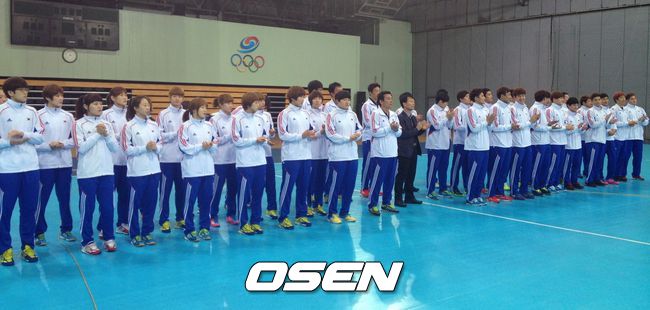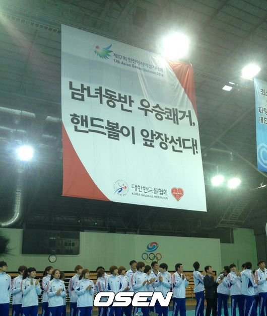 4일 태릉선수촌 오륜관에서 가진 2014 인천아시안게임 핸드볼국가대표 출정식에서 남녀 선수단은 하나 같이 "금메달"을 따내겠다는 각오를 다졌다. 이날 출정식에는 '남녀동반 우승쾌거, 핸드볼이 앞장선다!'는 대형걸개가 걸려 선수단의 뚜렷한 목표의식을 드러냈다.