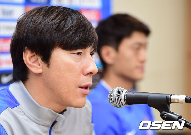 신태용 코치가 질문에 답변하고 있다.