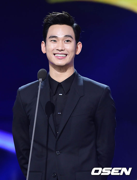 4일 오후 서울 국립극장 해오름극장에서 진행된 '2014 서울 인터내셔널 드라마 어워즈(Seoul International drama awards)' 에서 배우 김수현이 최우수작품상에 별에서온그대가 수상하자 소감을 밝히고 있다.