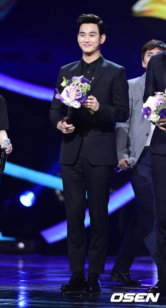 4일 오후 서울 국립극장 해오름극장에서 진행된 '2014 서울 인터내셔널 드라마 어워즈(Seoul International drama awards)' 에서 배우 김수현이 네티즌 인기상을 수상하고 있다.