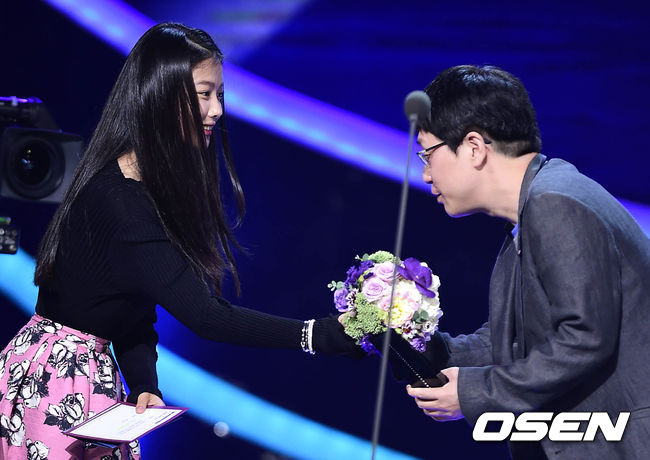 4일 오후 서울 국립극장 해오름극장에서 진행된 '2014 서울 인터내셔널 드라마 어워즈(Seoul International drama awards)' 에서 배우 김유정이 우수작품상을 시상하고 있다.
