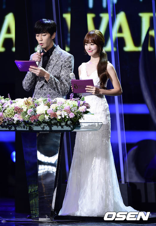 4일 오후 서울 국립극장 해오름극장에서 진행된 '2014 서울 인터내셔널 드라마 어워즈(Seoul International drama awards)' 에서 신성록과 진세연이 2부를 맞아 의상을 갈아입고 사회에 임하고 있다.
