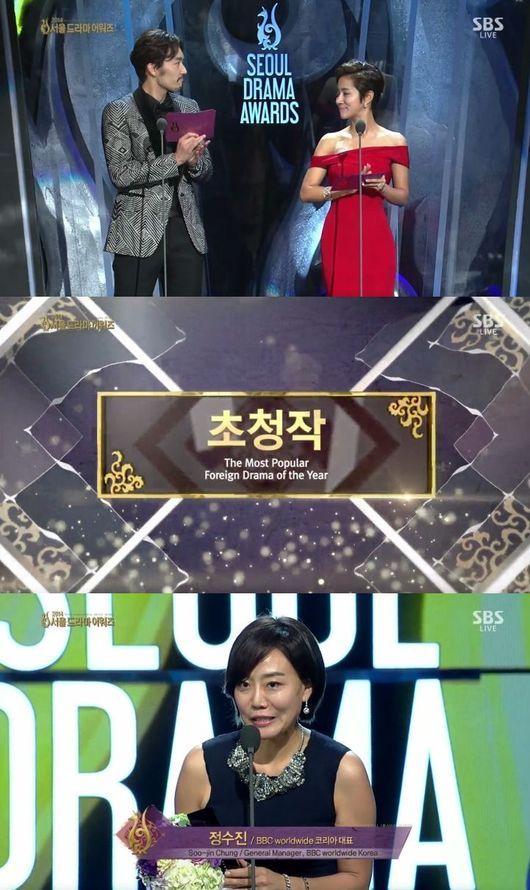 '셜록 시즌3' 호명 후 무대에 오른 정수진 BBC 월드와이즈 코리아 대표는 "한국의 '셜록'팬에 감사, 한국에 방송할 수 있게 해준 KBS와 CJ E&M에 감사하다. 에미상에서 3개 부문을 수상했는데, 이렇게 '서울 드라마 어워즈'에서도 이렇게 상을 수상해 뜻 깊은 한해가 됐다. 시즌4에도 많은 기대와 관심을 부탁한다"고 소감을 전했다.