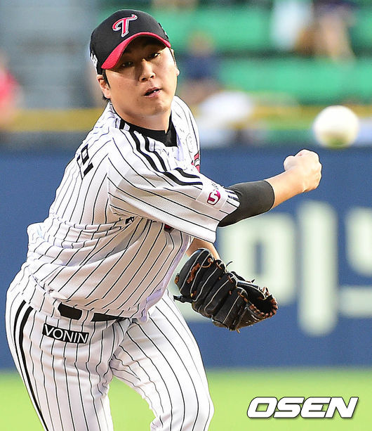 LG 선발 우규민이 힘차게 공을 뿌리고 있다.