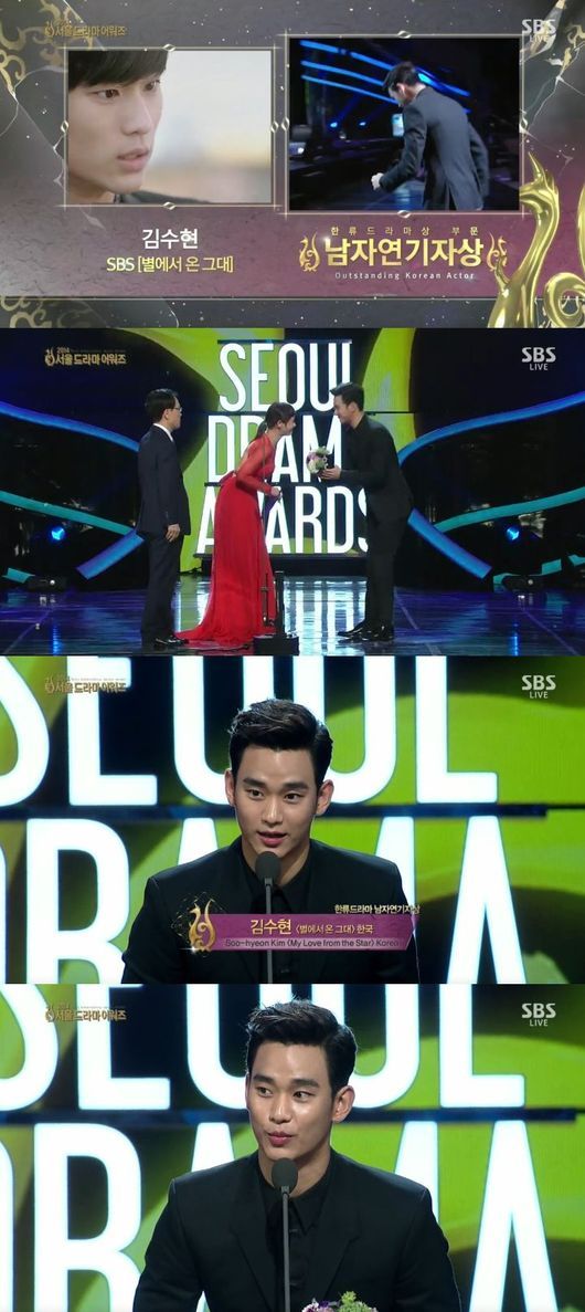 이날 김수현은 네티즌 인기상을, 출연작 '별에서 온 그대'는 한류드라마 부문 최우수작품상과 주제가상을 휩쓸며 총 4관왕에 올랐다.