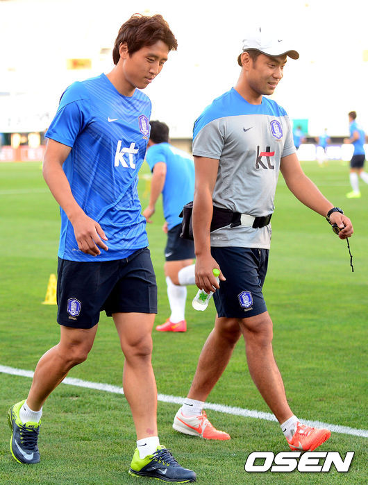 구자철이 부상으로 인해 트레이너와 개인훈련을 하고 있다.