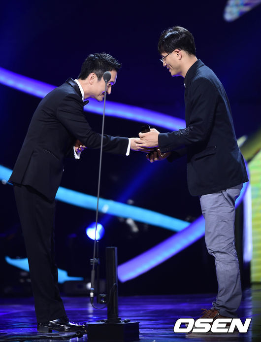 4일 오후 서울 국립극장 해오름극장에서 진행된 '2014 서울 인터내셔널 드라마 어워즈(Seoul International drama awarda)' 에서 장현성이 시리얼드라마 부분 수상작 기황후에 시상을 하고 있다.