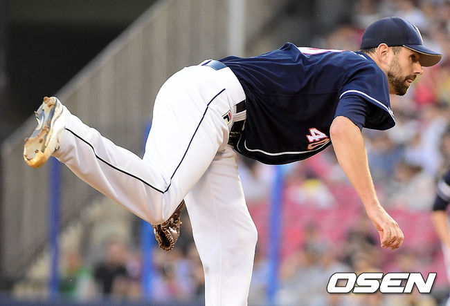 두산 선발 니퍼트가 힘차게 공을 뿌리고 있다.