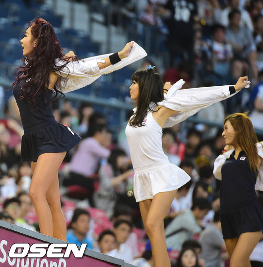 두산 치어리더들이 멋진 공연을 펼치고 있다.