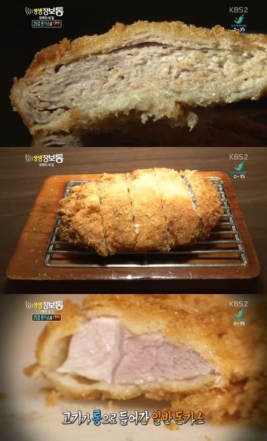 4일 오후 방송된 KBS2 '생생정보통'의 코너 '대박의 비밀'에는 25겹 돈까스 편이 방송됐다. '생생정보통' 제작진이 25겹 돈까스가 맞는지 확인해보기 위해 분리해본 결과 정확히 25겹 돈까스가 맞았다. 25겹 돈까스 전문점 측은 "우리는 국내산 암퇘지 고기를 사용하고 있다"며 25겹 돈까스의 비결을 밝혔다.