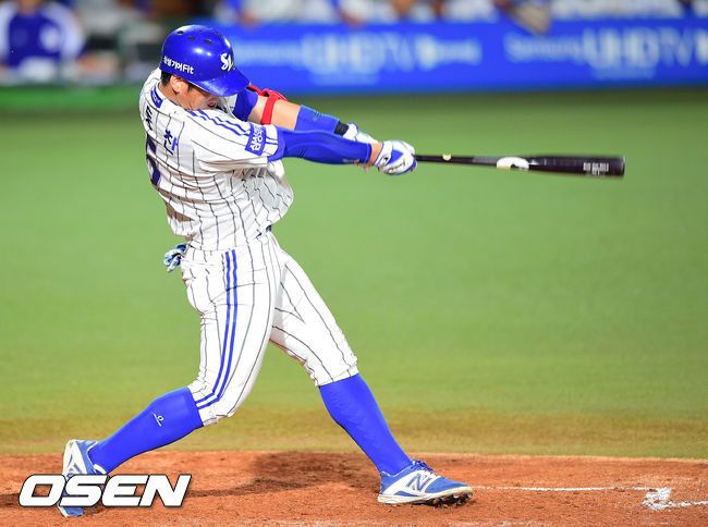 4일 오후 대구구장에서 열린 2014 한국야쿠르트 세븐 프로야구 삼성 라이온스와 한화 이글스의 경기, 5회말 2사 삼성 조동찬이 솔로홈런을 날리고 있다.
