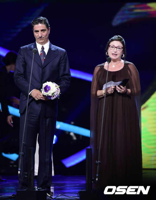 4일 오후 서울 국립극장 해오름극장에서 진행된 '2014 서울 인터내셔널 드라마 어워즈(Seoul International drama awards)' 에서 드라마 '카불키친2'가 대상으로 선정되어 수상소감을 밝히고 있다.