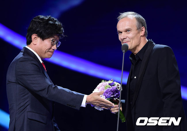 4일 오후 서울 국립극장 해오름극장에서 진행된 '2014 서울 인터내셔널 드라마 어워즈(Seoul International drama awards)' 에서 독일 에드가 설게가 남자연기자상을 수상하고 있다.