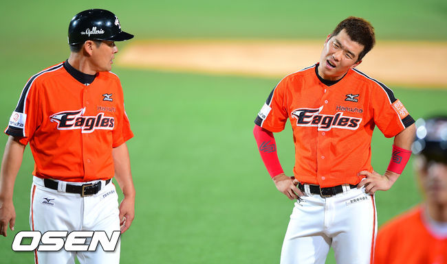 4일 오후 대구구장에서 열린 2014 한국야쿠르트 세븐 프로야구 삼성 라이온스와 한화 이글스의 경기,6회초 1사 1루 한화 정근우가 병살아웃되자 아쉬워하고 있다.