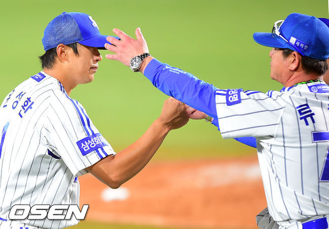 경기종료 후 삼성 완봉승 거둔 윤성환이 류중일 감독의 축하를 받고 있다 . / soul1014@osen.co.kr
