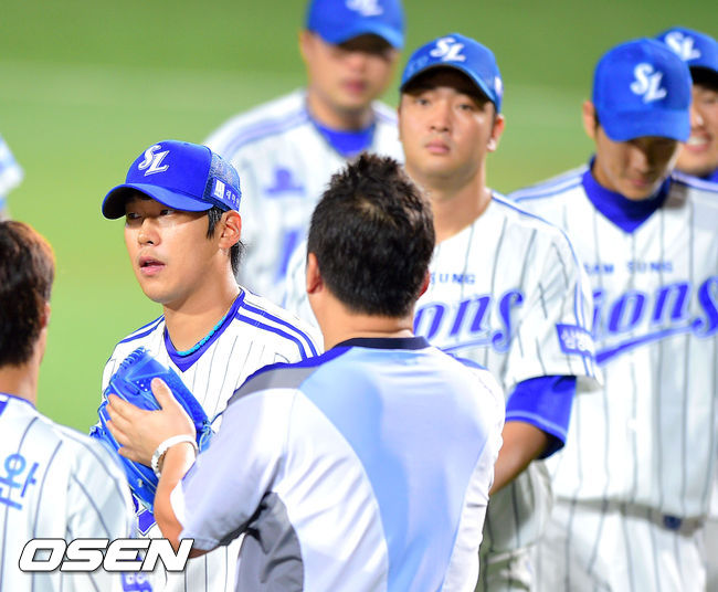 경기종료 후 삼성 완봉승 거둔 윤성환이 동료들의 축하를 받고 있다 . / soul1014@osen.co.kr