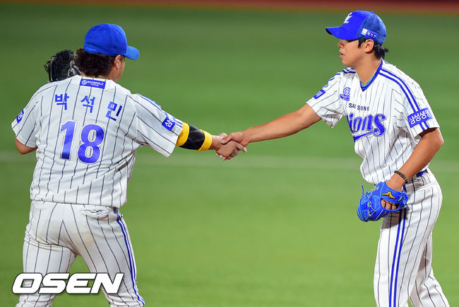 경기종료 후 삼성 선수들이 기뻐하고 있다 . / soul1014@osen.co.kr