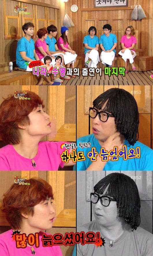 박명수는 박경림에게 “하나도 안 늙었다’며 칭찬을 했는데, 이를 들은 박경림은 바로 “많이 늙으셨다”고 받아 쳐 웃음을 자아냈다.
