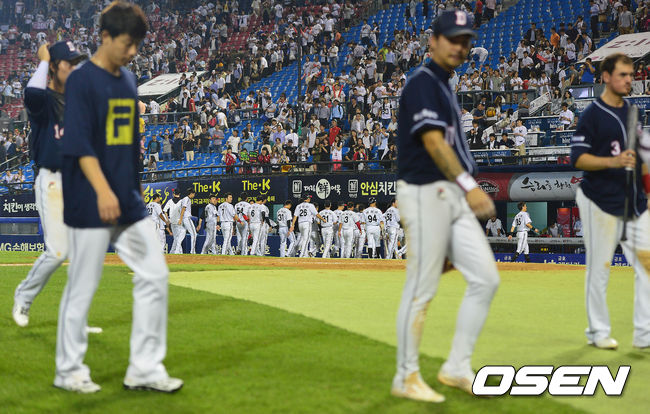 양 팀 선수들이 팬들에게 인사한 뒤 그라운드를 나서고 있다./dreamer@osen.co.kr
