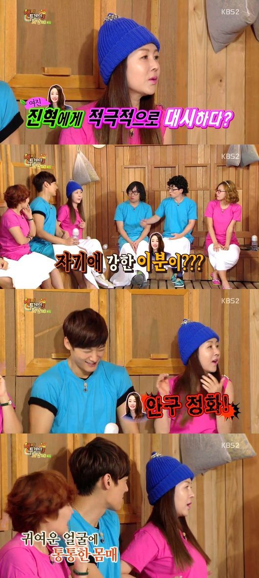 박준금은 4일 오후 방송된 KBS 2TV 예능프로그램 ‘해피투게더3’에서 “최여진 씨가 엄청 적극적으로 대시했다. 다른 곳을 보다가 ‘안구정화!’ 하면서 최진혁을 봤다”고 말했다.