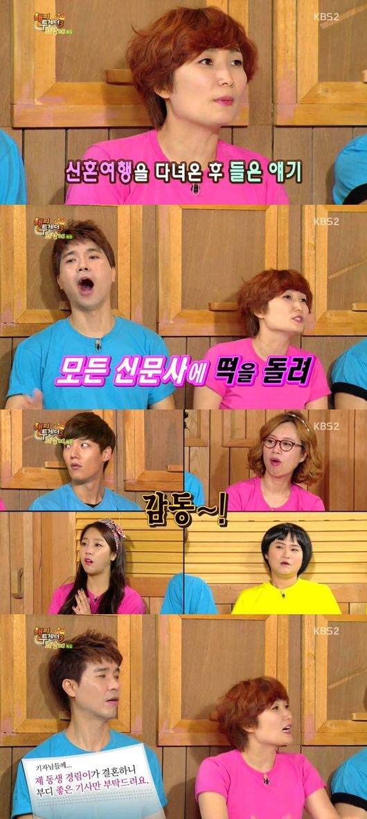 박경림은 4일 오후 방송된 KBS 2TV 예능프로그램 ‘해피투게더3’에서 “신혼여행 다녀왔더니 기자 분들이 박수홍씨한테 고마워해야 한다고 하더라”고 말했다.