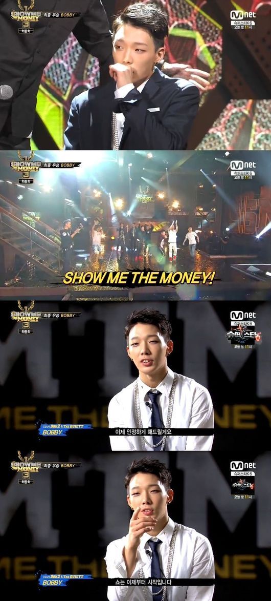 한편, 바비는 '쇼미더머니3' 후속으로 오는 11일 첫방송하는 '믹스앤매치'에서 YG의 새 보이그룹 아이콘(IKON)의 멤버를 선발하는 또 다른 서바이벌 프로그램으로 시청자를 만난다.